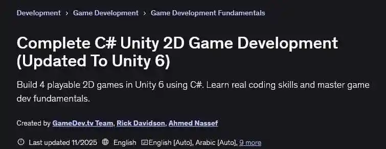 نام دوره : Complete C# Unity 2D Game Development (Updated To Unity 6)