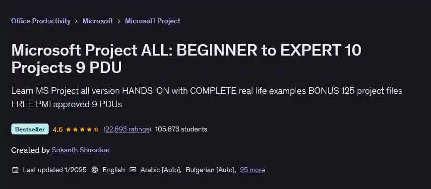 نام دوره : Microsoft Project ALL: BEGINNER to EXPERT 10 Projects 9 PDU