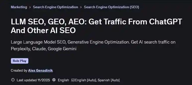 نام دوره : LLM SEO, GEO, AEO: Get Traffic From ChatGPT And Other AI SEO