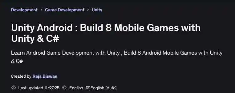 نام دوره : Unity Android : Build 8 Mobile Games with Unity & C#