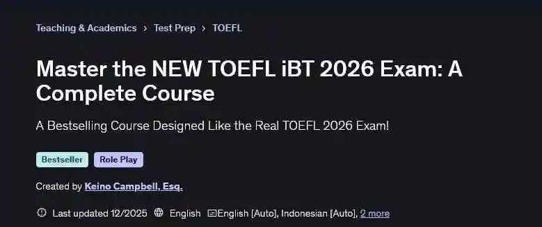 نام دوره : Master the NEW TOEFL iBT 2026 Exam: A Complete Course