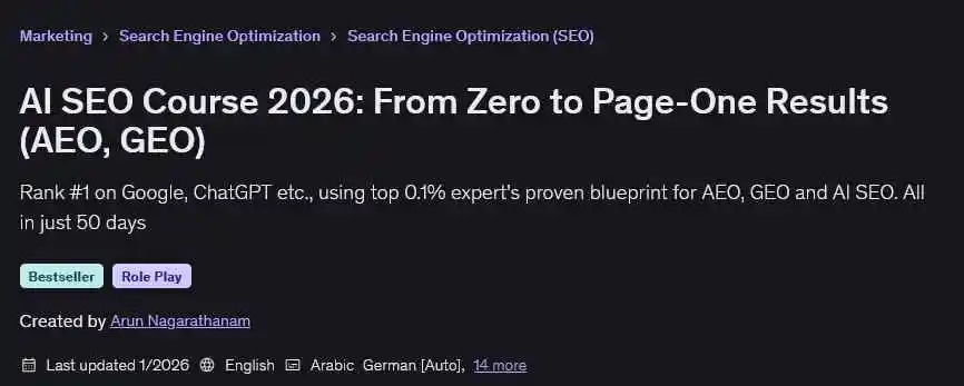 نام دوره : AI SEO Course 2026: From Zero to Page-One Results (AEO, GEO)